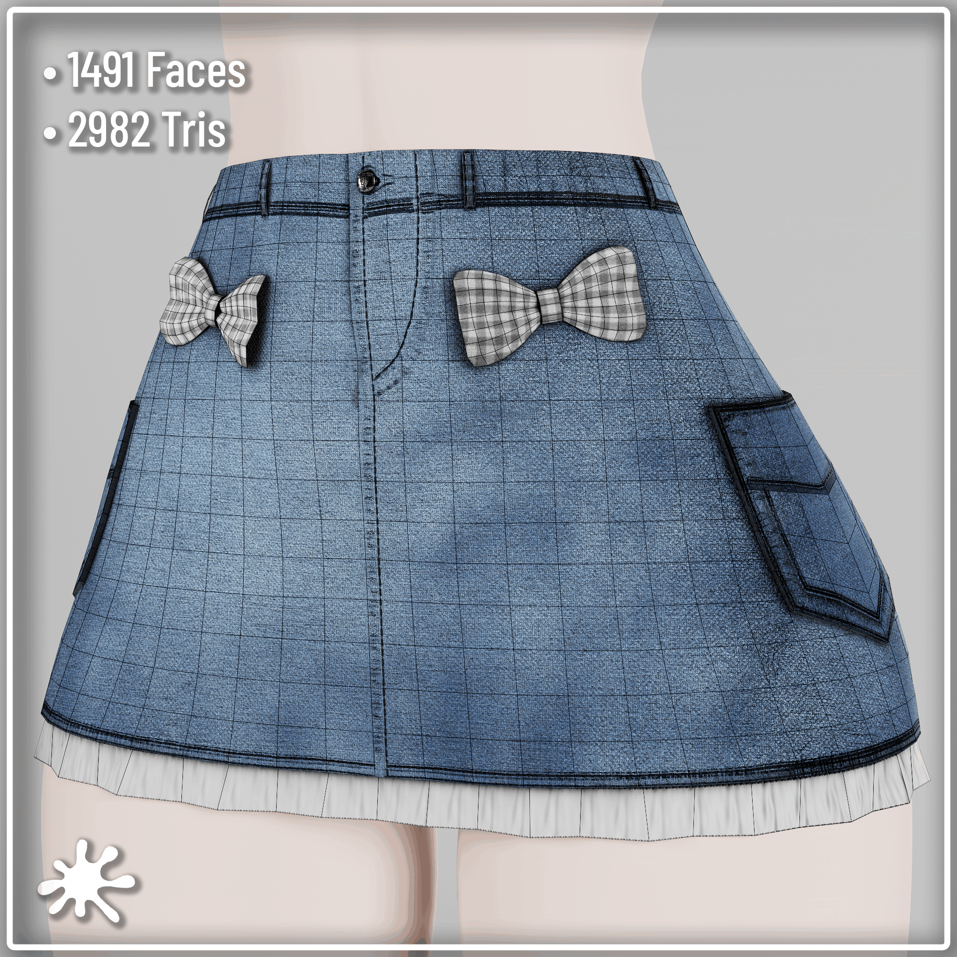 The Denim Skirt is rigged to zinfit base, weight painted, uv mapped and textured and has clean topology.