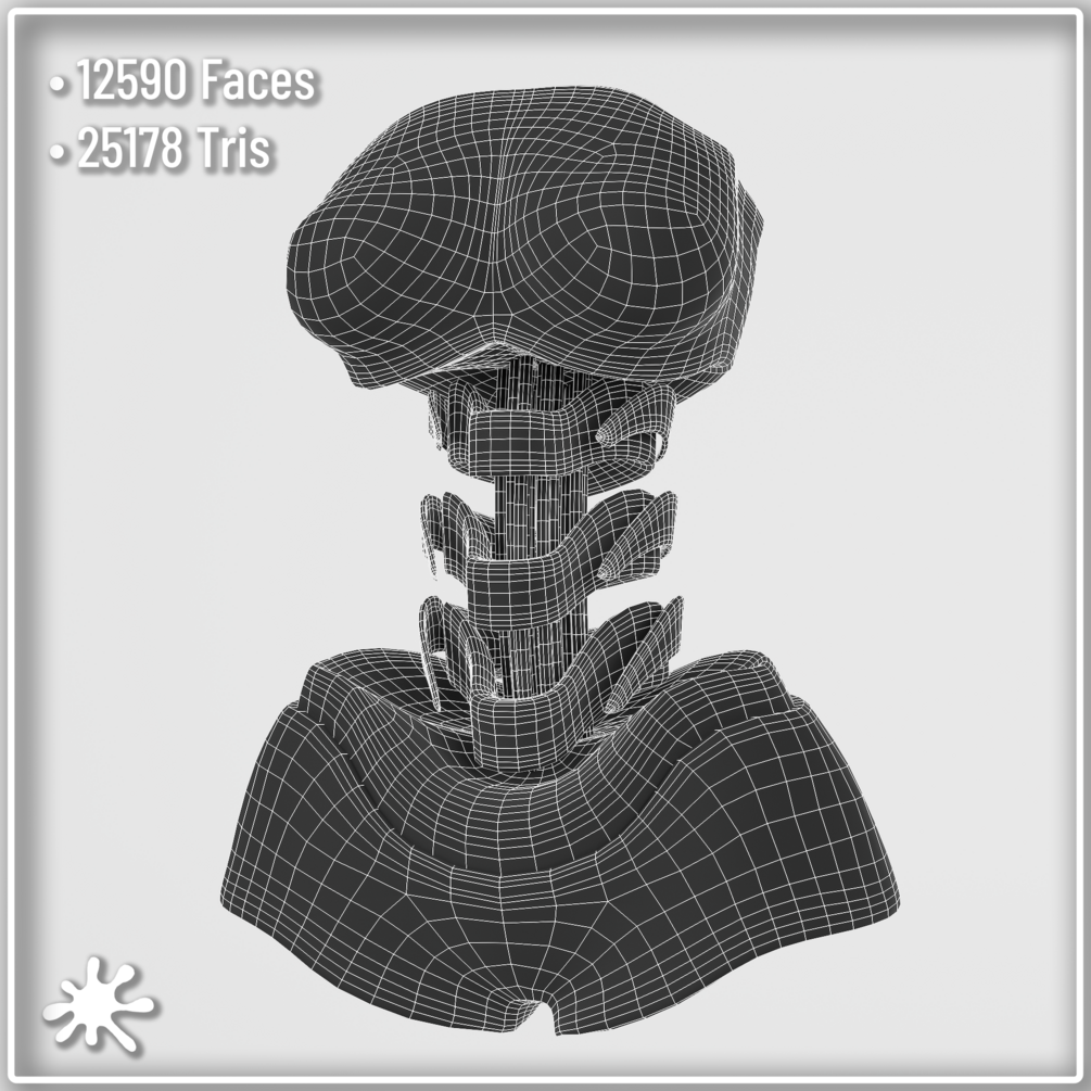 The Cyber Skeleton is rigged to zinfit base, weight painted, uv mapped and textured and has clean topology.