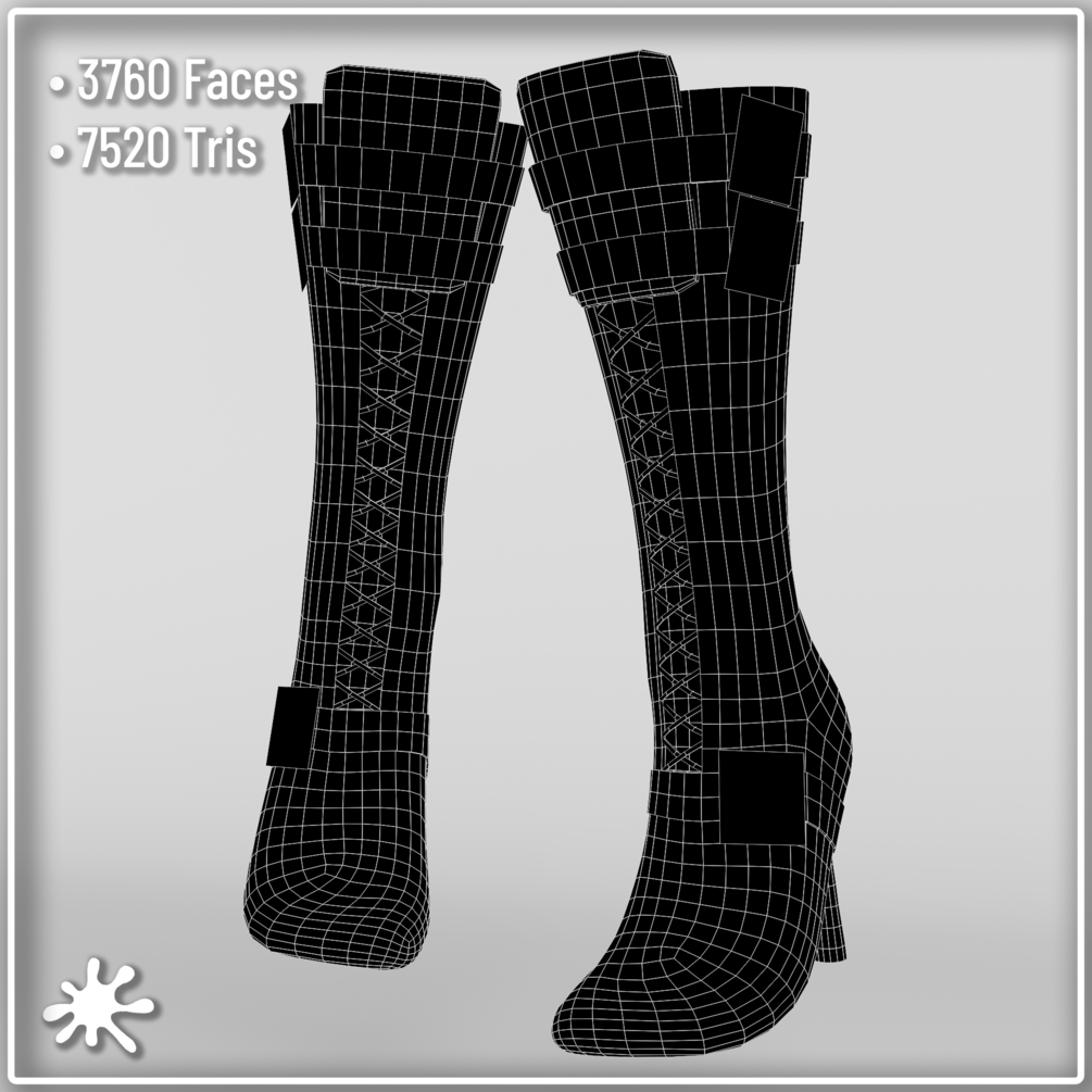 The Steampunk Heels is rigged to zinfit base, weight painted, uv mapped and textured and has clean topology.