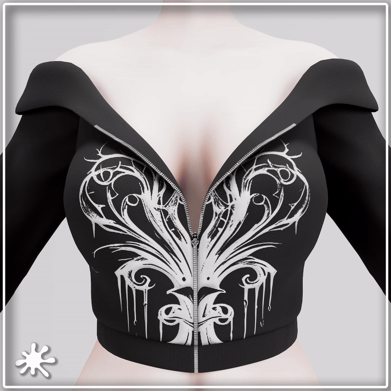 Payhip :)Y2K/Goth Crop Zip-up is rigged to zinfit base, weight painted, uv mapped and textured and has clean topology.
